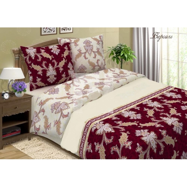 Комплект постельного белья "Версаль" изготовлен из набивного поплина - состав 100% хлопок, плотность 120гр/м2. Бельё из поплина качественное, приятное на ощупь выдерживает около 150 - 200 стирок.